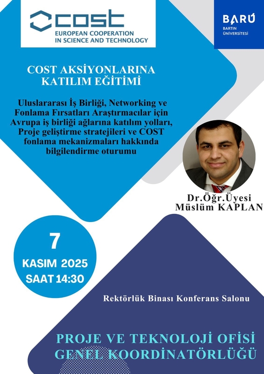 Uluslararası İş Birliği, Networking ve Fonlama Fırsatları Araştırmacılar için Avrupa iş birliği ağlarına katılım yolları, proje geliştirme stratejileri ve COST fonlama mekanizmaları hakkında bilgilendirme oturumu düzenlenecektir.