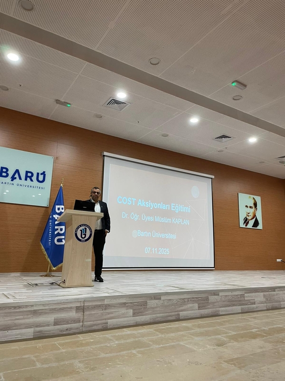 Bartın Üniversitesi Proje ve Teknoloji Ofisi Genel Koordinatörlüğü tarafından düzenlenen “COST Aksiyonlarına Katılım Eğitimi”, 7 Kasım 2025 tarihinde Rektörlük Binası Konferans Salonu’nda gerçekleştirildi. Eğitim, Dr. Öğr. Üyesi Müslüm Kaplan tarafından verildi. Üniversitemizin çeşitli fakülte ve yüksekokullarından akademisyenlerin katılım sağladığı oturumda, Avrupa Birliği COST (European Cooperation in Science and Technology) programı kapsamındaki proje katılım süreçleri detaylı bir şekilde ele alındı.